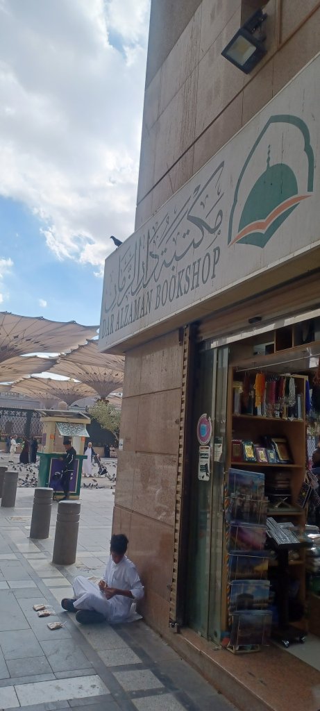 A makkah nous n’avons pas pu faire ce poste mais à Medine, à quelques pas de notre hôtel, proche de la porte 338 de l’esplanade de la Mosquée du Prophète (SAW), nous avons découvert une libraire qui offre des merveilles pour les amoureux de la lecture.