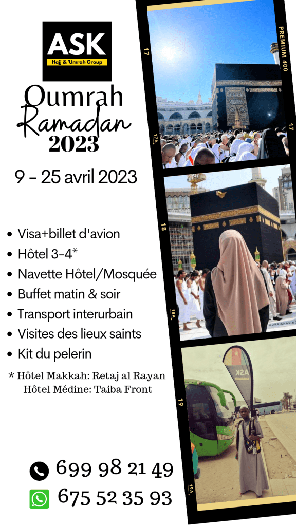 Il est important de se décider le plus tôt et d’entreprendre les démarches pour votre enregistrement car cette année, la Oumrah du Ramadan risque d’enregistrer un nombre très important de pèlerins par rapport aux autres années du fait de la levée de toutes les restrictions liées à la limite d’âge et de quotas. A titre de rappel, la oumrah de décembre 2022 à compté plus de pèlerins que le hadj 2022 justement suite à la levée de ces restrictions.