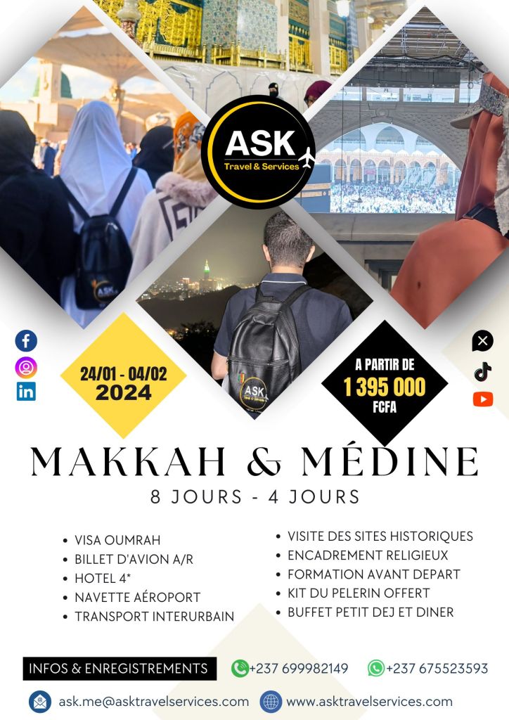 Enregistrez-vous pour notre programme du 24 janvier au 4 février 2024 et profitez pour faire votre Oumrah et visiter les mieux saints dans un climat doux et agréable