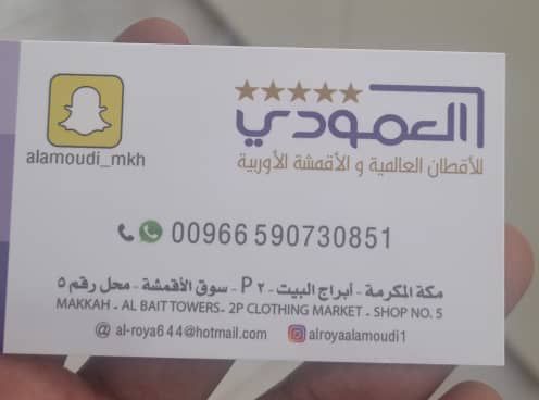 A makkah une seule adresse dans le bâtiment du Hilton au deuxième étage en face du Haram, la boutique AL AMOUDI TEXTILE (https://www.instagram.com/al_amoudi2011?igsh=MWQ5MW51bXljZXk0Mw==)