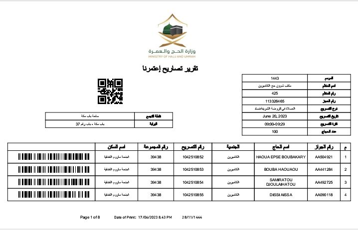 Dans le cadre du hadj 2024 pour le Cameroun, c’est la commission nationale du hadj qui s’occupe d’obtenir les permis de tous les pèlerins. La liste est remise aux encadreurs qui s’organisent pour accompagner les pèlerins. Cependant il peut arriver que les permis ne soient pas disponible à temps à cause de l’affluence.