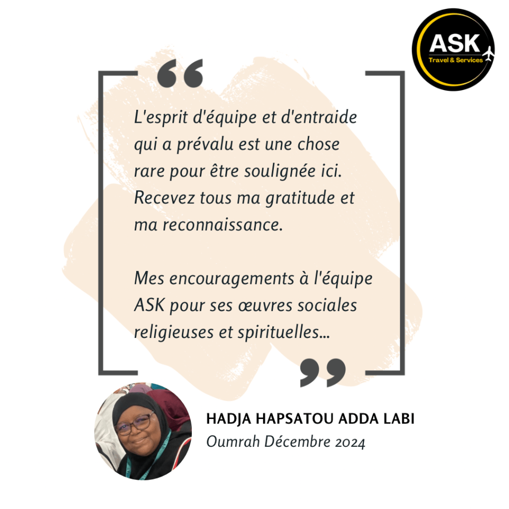Je poursuis en exprimant toute ma gratitude à l’équipe ASK dirigée de main de maître par mr Nourou et Mme Amina. Qu’Allah vous récompense à la mesure du bien que vous faites aux Humains. Amin
