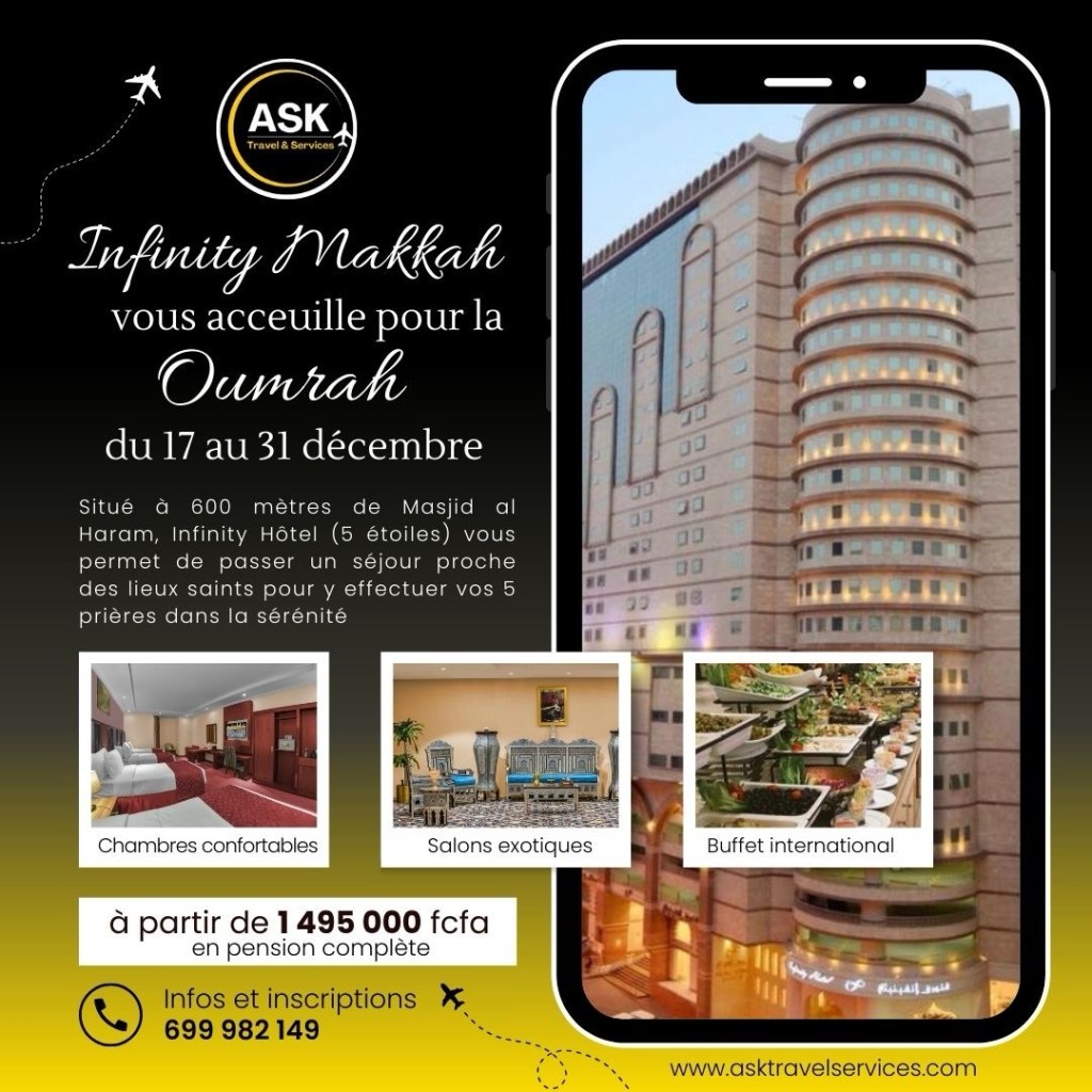 Voyagez avec ASK pour un séjour inoubliable en terre sainte. Nos hôtels sont situé à quelques pas des Mosquées saintes à Makkah et Madinah. Des buffets gourmands pour faire le plein d’énergie. Visites des sites religieux et historiques avec des guides professionnels pour vous ressourcer à fond ainsi que des activités extra pour joindre l’utile à l’agréable et se détendre un peu avant le retour pour affronter les challenges du quotidien.