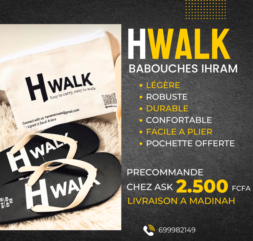 ASK vous offre la possibilité de passer des précommandes au prix de 2500 fcfa et de récupérer vos babouches sereinement à votre arrivée à Madinah avant le Hadj. Cette petite merveille est disponible en 3 tailles M, L et Xl